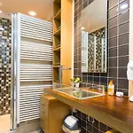 There are conveniences, like an iron with ironing board and air conditioning, along with a multi-channel television and wireless internet. The interior elements include a sofa and a writing table, as well as a fireplace and sound-proofed windows. The 3-bathroom villa comes with a bathroom with a separate toilet, a bath, and a shower. Hairdryers and towels are also available.